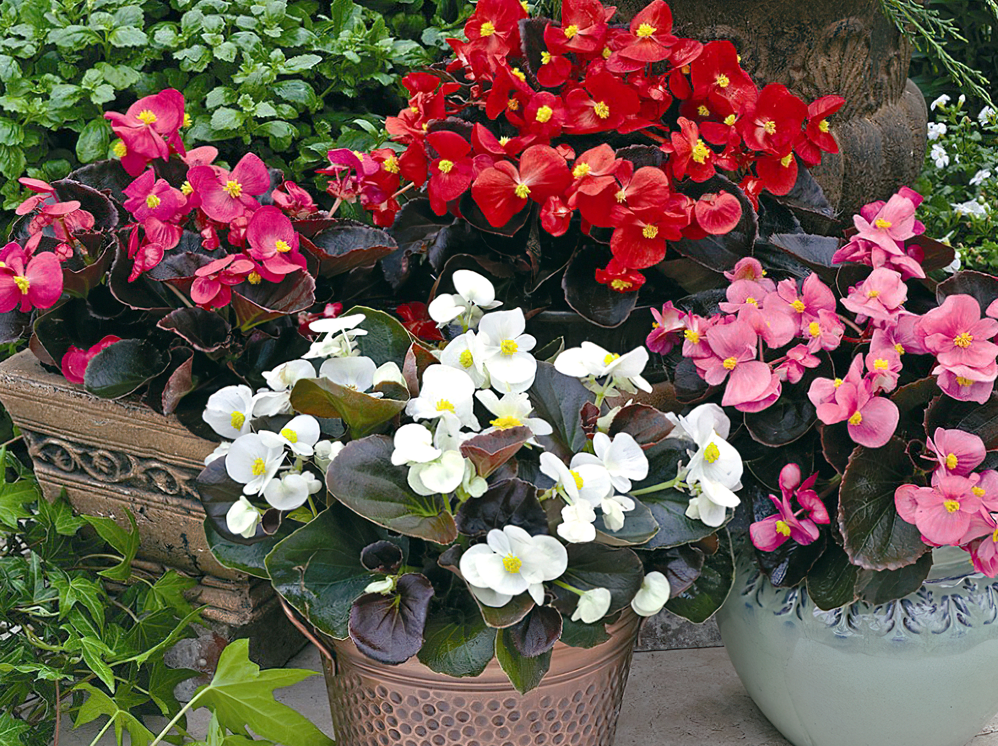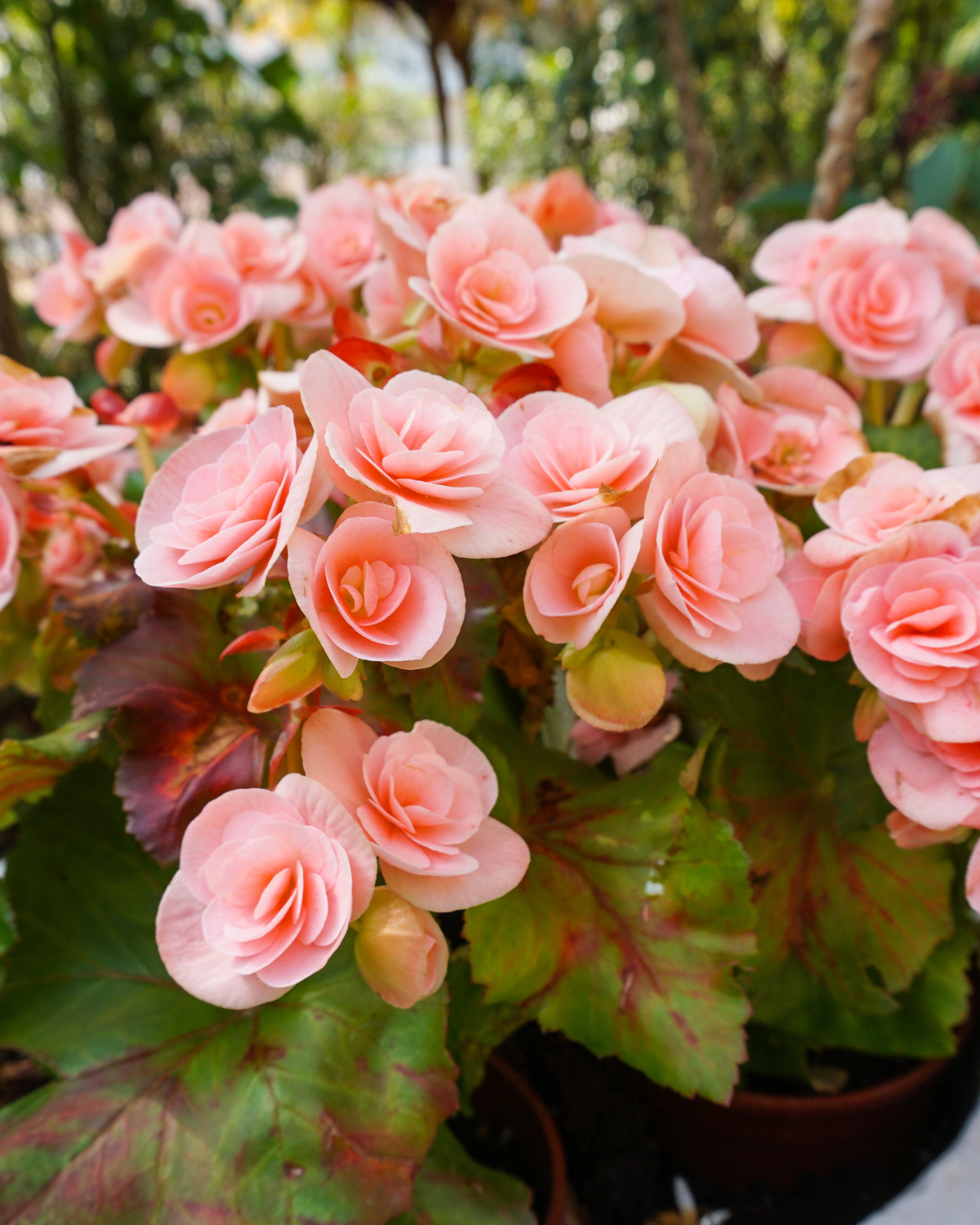 ❌ Ампельні бегонії — хоч і гарні у підвісних кашпо, вони більш тендітні, схильні до ураження грибками й потребують захищеного середовища.